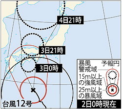 今回の台風12号は、雨が主体である。更にその進む速度のため、より長い時間の降水により地域によっては大変な被害をもたらすと考えられる。